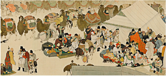 丝绸之路之所以能成为欧亚大陆经济交流和文明交往的大动脉,首先基于它是一条经济贸易的通道:从草原之路的青铜、玻璃、羊毛、小麦、玉石,到沙漠之路的丝绸、黄金、银器、玻璃、美酒,再到海上丝路的各种布匹、香料、瓷器、染料等,都成为丝路商品贸易繁荣的见证。但是,当回溯丝绸之路的发展历史时,我们不禁感慨,岁月飞逝、沧海桑田,作为贸易之路的“丝绸之路”或许在现实中已难觅实迹,但其积淀下来的文化交流融合的印记却历经岁月而愈加明晰,显现在科技、艺术、日常生活等各个方面。
