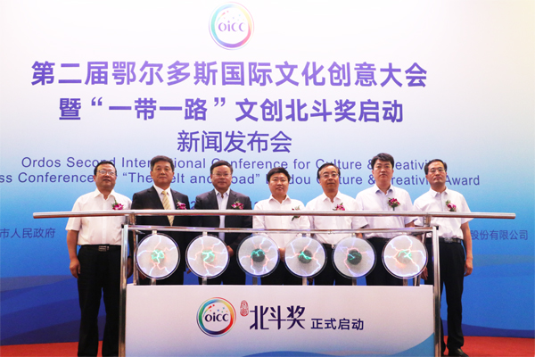 鄂尔多斯市委副书记、市人民政府市长龚明珠,市委常委、东胜区委书记于新芳,中国互联网新闻中心副主任李富根等领导以及中国著名文化创意专家、品牌战略专家、北京大学文化产业研究院教授王齐国共同出席了发布会,并正式启动文创北斗奖,公开征集“一带一路”文化创意设计名师国别邀请展、文化创意设计作品新锐展,文化创意设计作品和角色创意嘉年华作品。