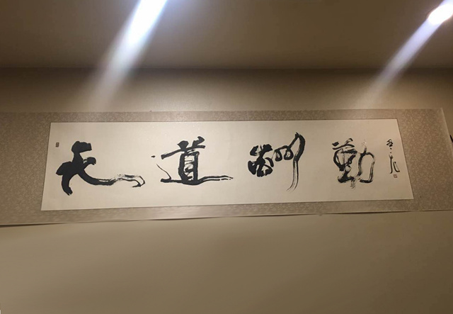 图为朱小恒颇为喜欢的一幅字画——天道酬勤