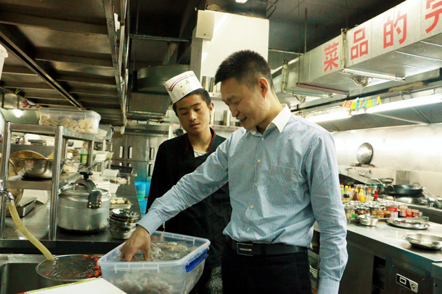 图为朱小恒指导员工工作