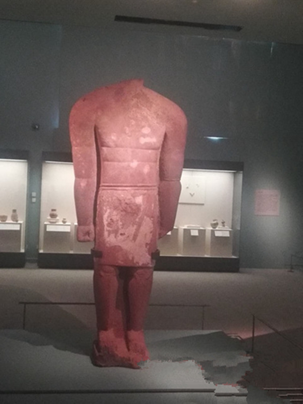 古代沙特地区的人们,不光能制作锋利、小巧的石箭镞、刮削器,也热衷于制造一些体型巨大的石人雕像。纹饰清晰,肌肉线条流畅有力……一尊摆放在中央的雕像已经没有了头部,但仍然高得出奇。据翟胜利估算,按照常人一米七或一米八的身高来算,这雕像足有两人多高,在古代也算是大型工程了。