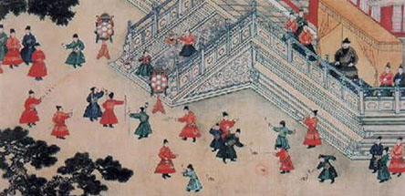 唐代诗人张祜曾作诗赞道:“倾城人看长竿出,一伎初成赵解愁。”诗中提到的赵解愁,擅长竿技,是教坊中的拔尖者,经常进宫表演节目。当时还有很多像赵解愁这样的“演艺界”明星,如公孙大娘、穆氏、王内人、王大娘等。