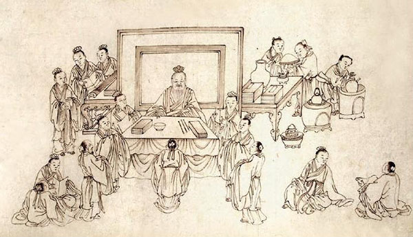 新儒家学派由春秋末至圣先师孔子创立,他开办私学,有教无类,因材施教,诲人不倦,教学相长,培养了弟子三千、贤者七十二人,其弟子们也代代传承、延续孔子的学问。其中影响较大的有战国中期的孟子,战国末年的荀子,西汉时期的董仲舒,北宋时的张载和二程兄弟,南宋时期的朱熹和陆九渊,明代中叶的王阳明,明末清初的顾炎武、黄宗羲、王夫之等。