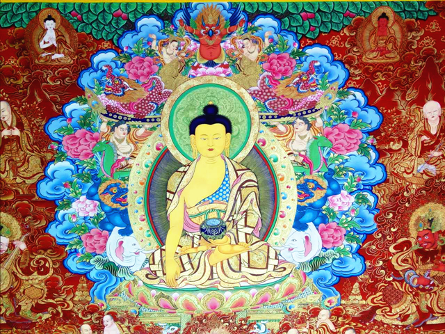 图:桑杰本唐卡作品《释迦摩尼与十八罗汉》局部