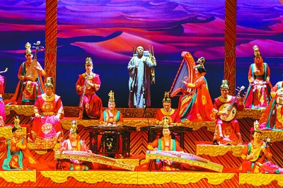 如果说《远古的呼唤》是用现代手段来辅助民乐的话,那么在《玄奘西行》当中,民乐则开始真正“挑起大梁”。《玄奘西行》是中央民族乐团推出的世界首部民族器乐剧。该剧以玄奘西行的故事为主线,展现了丝绸之路上的文化和民族音乐艺术的多样性。作品中使用了维吾尔族的都塔尔、哈萨克族的冬不拉、塔吉克族的鹰笛以及印度的班苏里笛和西塔尔琴等不同民族的乐器。