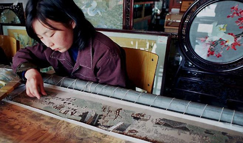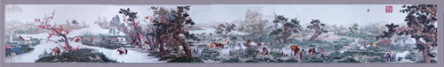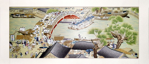 张择端一幅《清明上河图》毕现了北宋年间都城开封昔日的风采:市井、桥畔、街巷、阡陌,商贾云集,摩肩接踵,热闹非凡......,在商品经济大发展的北宋,刺绣业在手工业中占有极其重要的地位,人们把汴绣亦称宋绣。宋绣在中国刺绣史上占有突出的地位,它在实用品和欣赏品上都有辉煌的成就。
